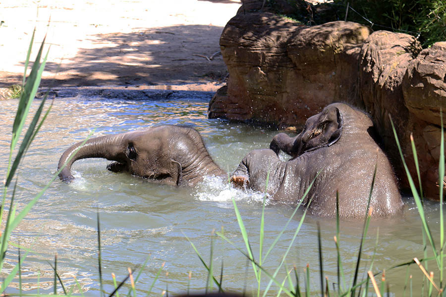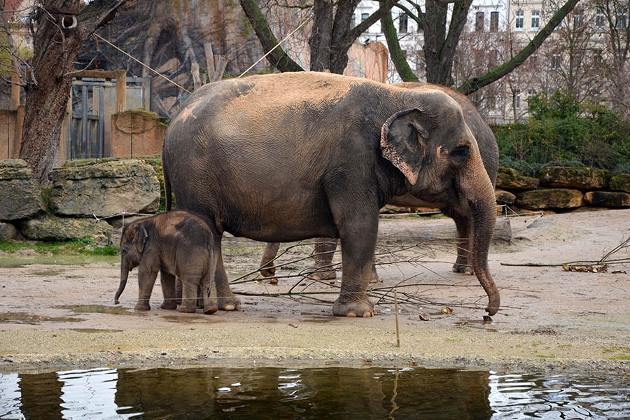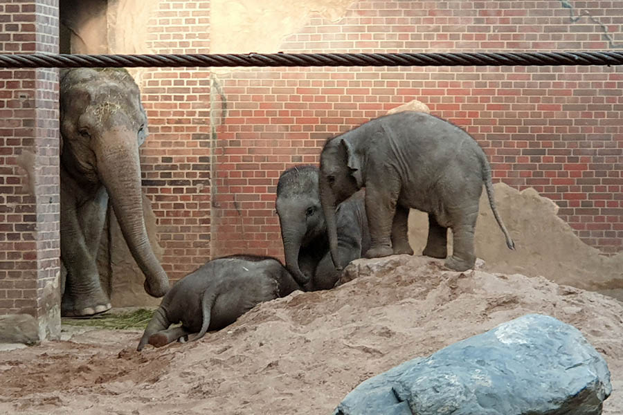 Der Leipziger Zoo legt großen Wert darauf, dass mehrere Elefanten in verschiedenen Altersstufen in einem funktionierenden Sozialverband zusammen leben. Das ist nun – auch zur Freude der Zoo-Besucher – weitgehend geglückt. Die Herde sichert Zusammenhalt und gegenseitigen Schutz, die jungen Kühe lernen von den älteren die Aufzucht des Nachwuchses.