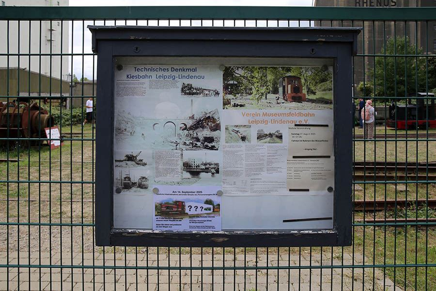 Die Strecke vom Museumsbahnhof bis in die Schönauer Lachen hinein ist etwa 1,5 Kilometer lang. Zu besonderen Anlässen führt das „rollende Museum“ auch den historischen Eimerkettenbagger vor. Es bewahrt ein wichtiges Stück Industriekultur Leipzigs vor dem Vergessen. Geplant ist, mit Teilen einer Kiesaufbereitungsanlage eine bewegliche Schauanlage aufzubauen. Eine kleine Ausstellung erzählt im Lokschuppen zudem die Geschichte der Bahn. Wegweisende Schilder sind nur rund um öffentliche Fahrtage zu finden, um Schmierereien einzudämmen. Beim Leipziger Wasserfest oder bei den Tagen der Industriekultur ist der Verein regelmäßig dabei. Im Winter gibt es auch Glühweinfahrten.