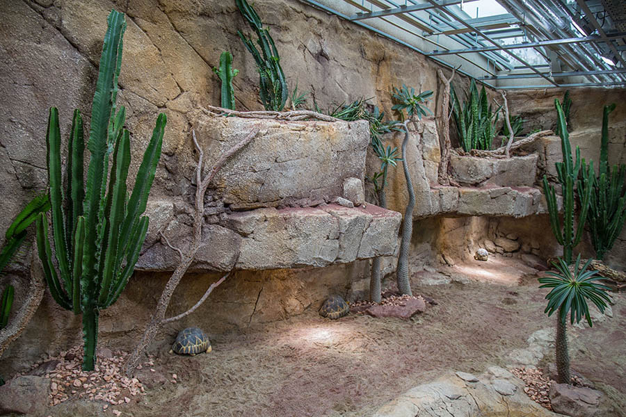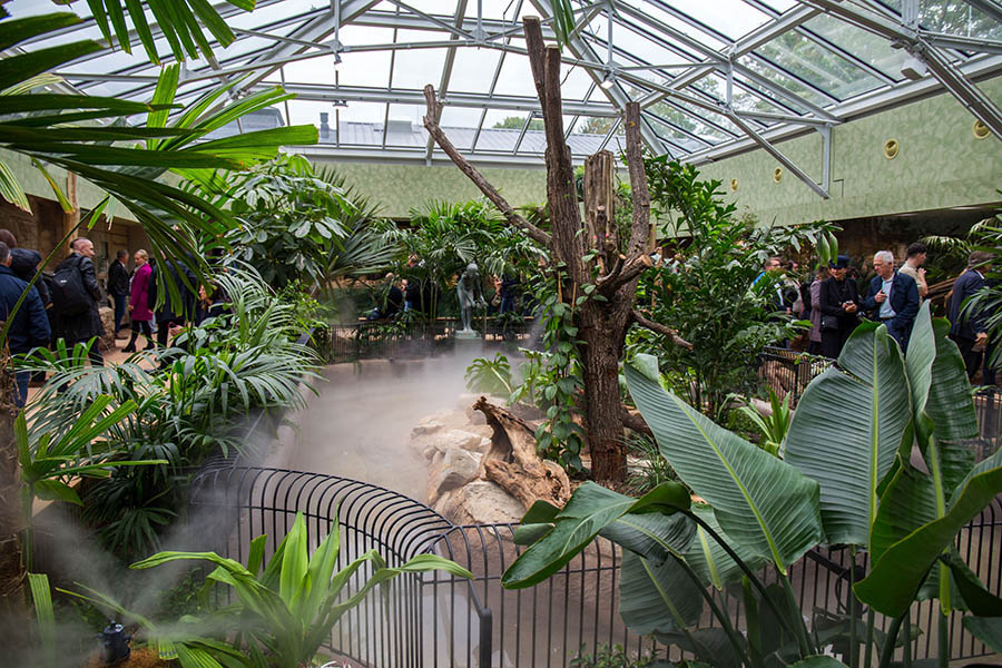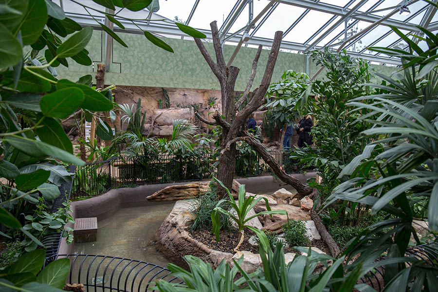 Das Terrarium ist mit moderner Technik ausgestattet. Dazu gehören LED-Beleuchtung, unsichtbare Heizelemente, automatische Beregnungs- und Befeuchtungsanlagen sowie UV-Beleuchtung an Plätzen, an denen sich die Tiere besonders wohlfühlen. Das neue Glasdach mit Thermoverglasung lässt viel Licht hinein. Nebeldüsen versprühen winzige Wassertropfen und sorgen somit für hohe Luftfeuchtigkeit.