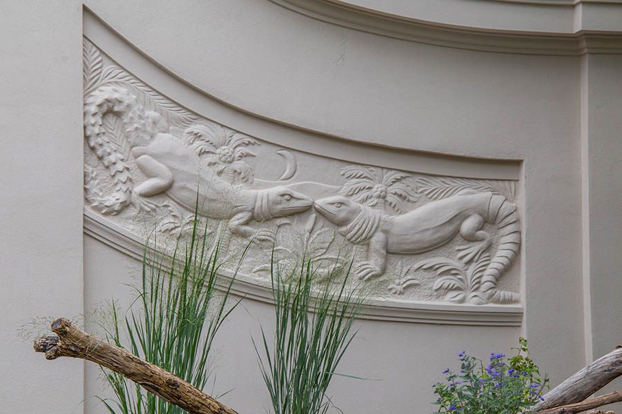 Deshalb wundert es nicht, wenn Zoodirektor Jörg Junhold das runderneuerte Terrarium aus dem Jahr 1913 den ersten Besuchern bei der Eröffnung voller Stolz präsentiert. „Ein Denkmal mit modernster Technik“, sagt er. Damit ist der Gründergarten wieder komplett. Das Gebäude wird 1913 nach Plänen des Baurates Anton Käppler erbaut, die Fassade gestaltet Rolf Saudek. Hinter dieser denkmalgeschützten Fassade wird das Gebäude komplett neu aufgebaut (Kosten: 7 Millionen Euro).