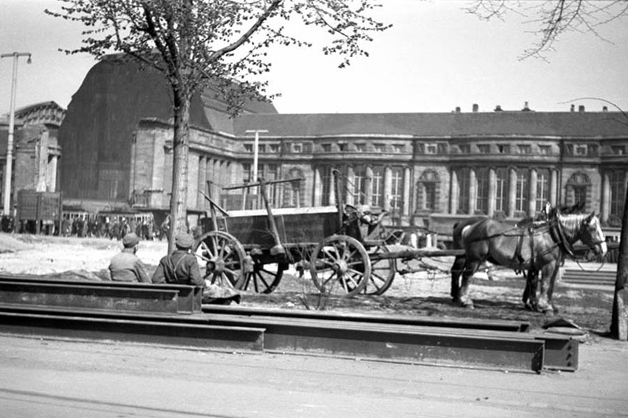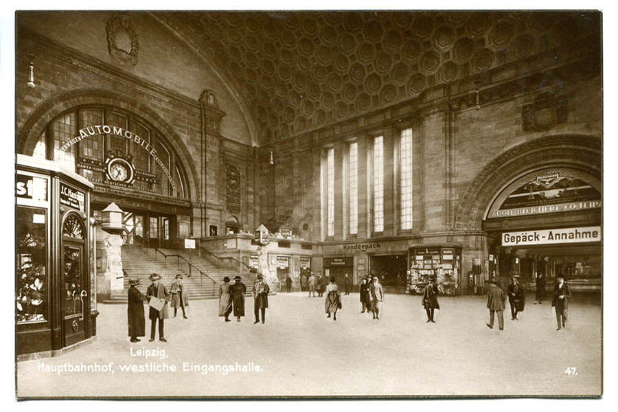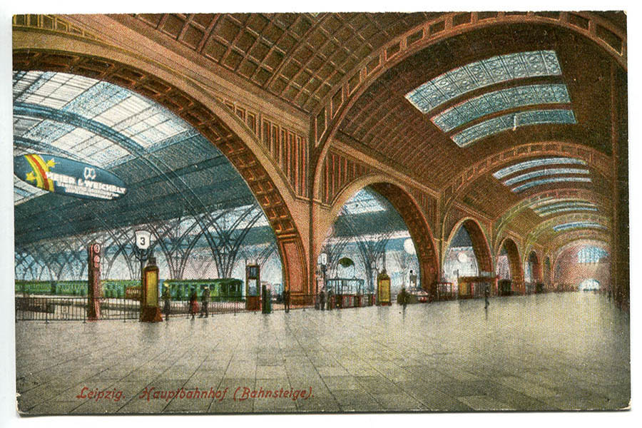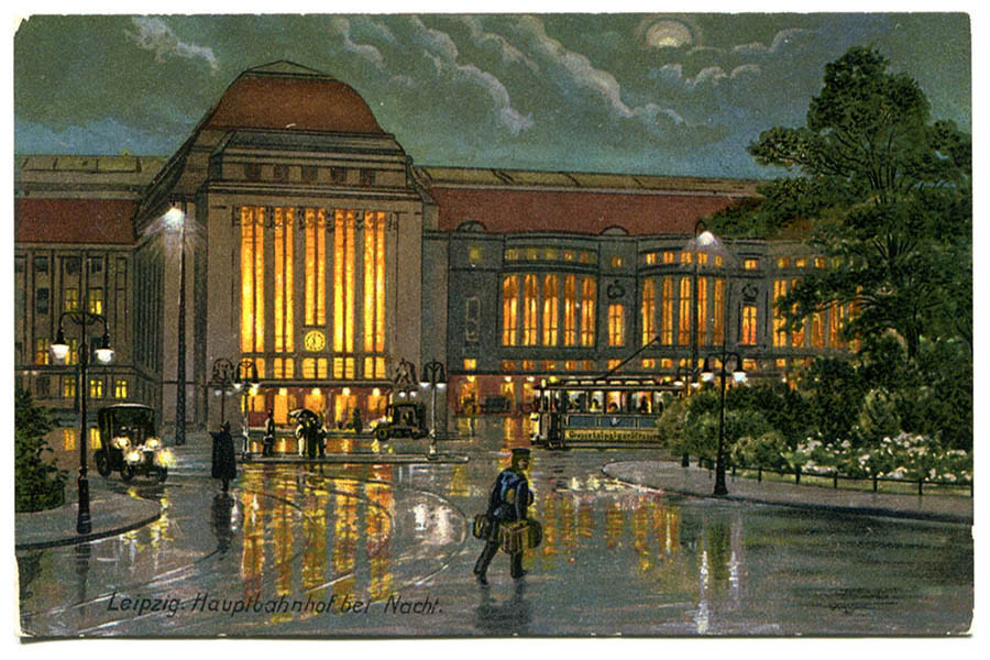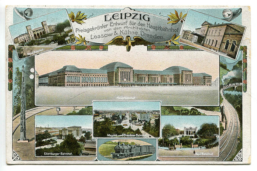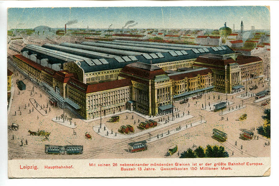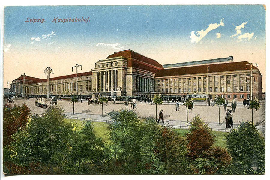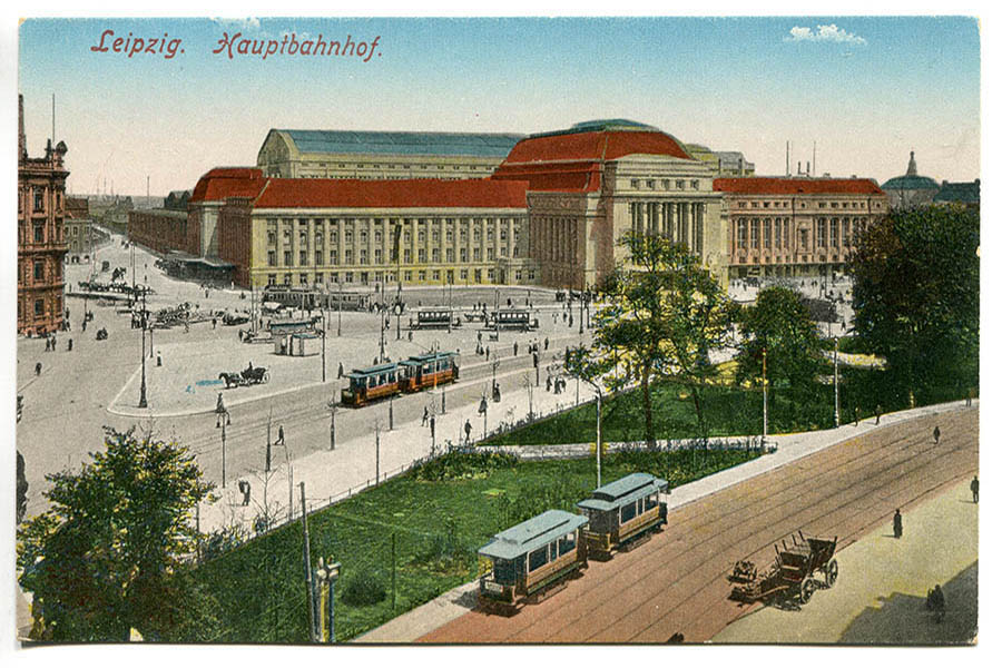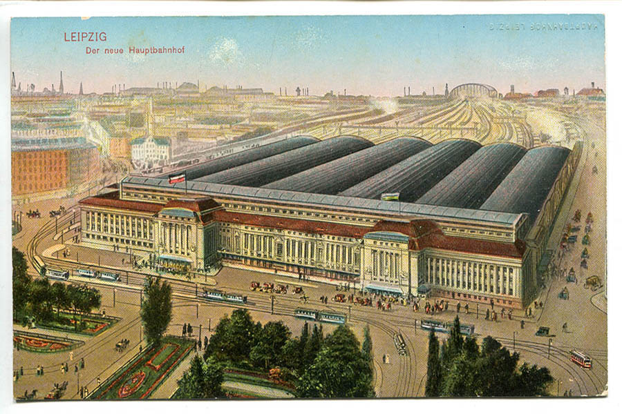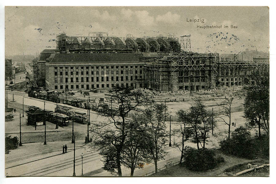 Der Bau des Leipziger Hauptbahnhofs begann 1909. Zuerst wurde das künftige Baufeld beräumt, um anschließend in West-Ost-Richtung nach dem schrittweisen Abriss des Thüringer, des Magdeburger und zum Schluss des Dresdner Bahnhofs den neuen Prachtbau entstehen zu lassen.