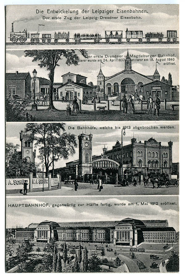 In der Frühphase des Eisenbahn-Jahrhunderts bauten konkurrierende private Eisenbahn-Gesellschaften zwischen 1837 und 1874 sechs Fernbahnhöfe in der Messestadt. Der Dresdner Bahnhof, der Magdeburger Bahnhof, der Bayerische Bahnhof, der Thüringer Bahnhof, der Berliner Bahnhof und der Eilenburger Bahnhof bildeten die Anfangs- bzw. Endpunkte wichtiger überregionaler Strecken, die von dem angesehenen Handelszentrum in alle Himmelsrichtungen führten. Nur der Berliner Bahnhof war ein Durchgangsbahnhof. Die fünf anderen entstanden als Kopfbahnhöfe.