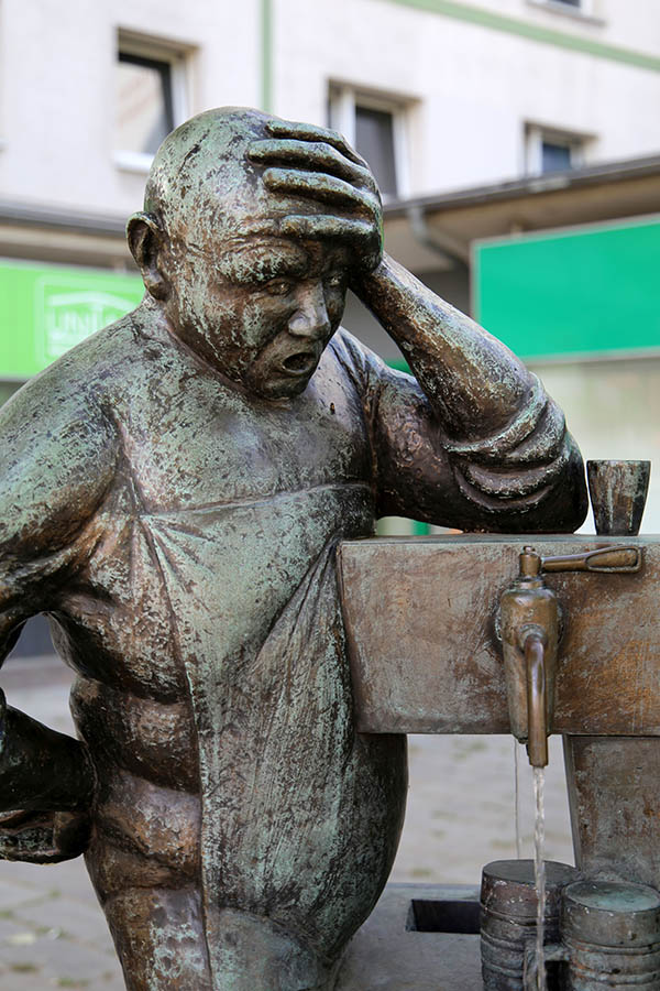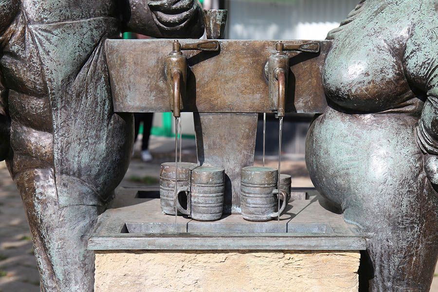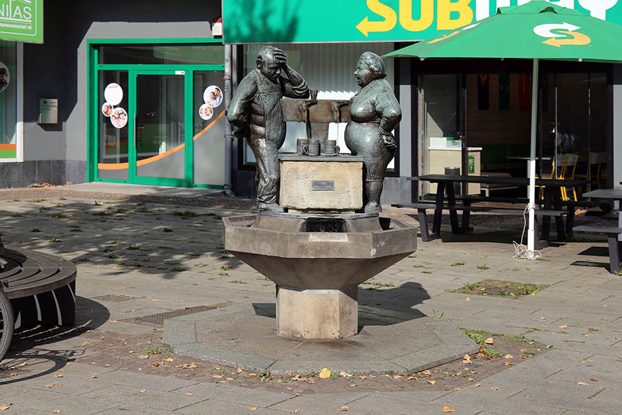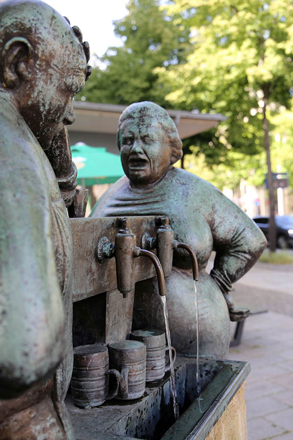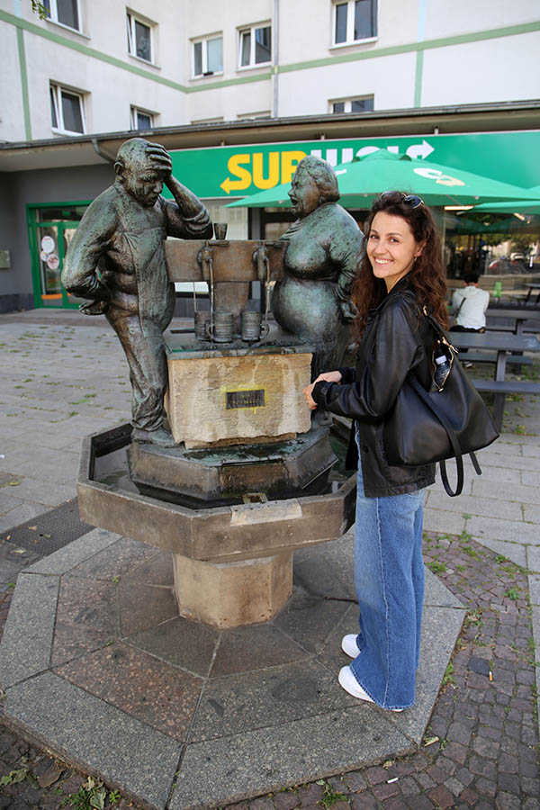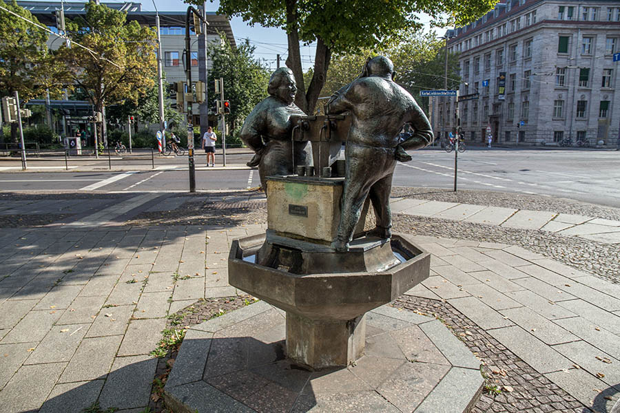 Der lustige Brunnen mit dem Namen „Ausschank“ befindet sich an der Ecke Karl-Liebknecht/Richard-Lehmann Straße, gegenüber dem Subway-Store in der Karl-Liebknecht-Straße 128.