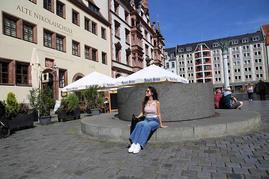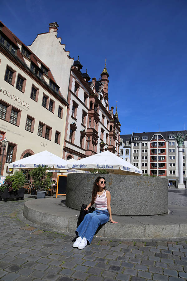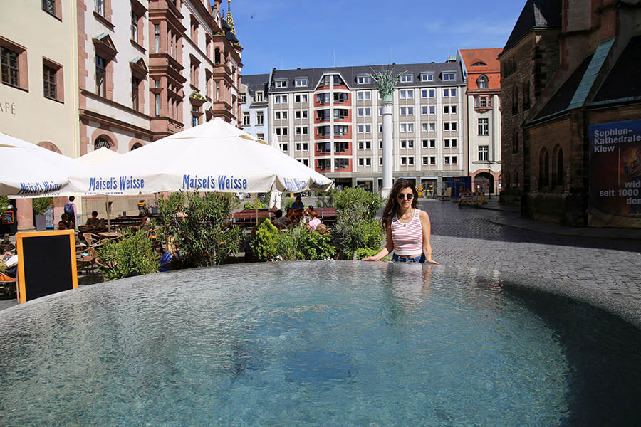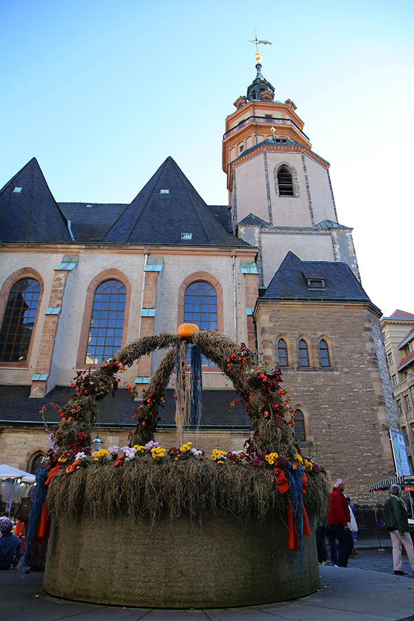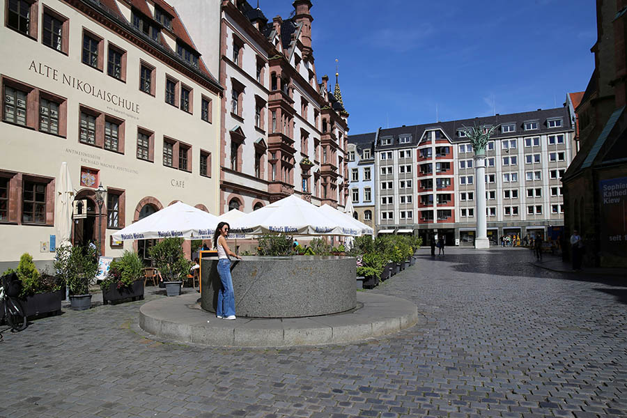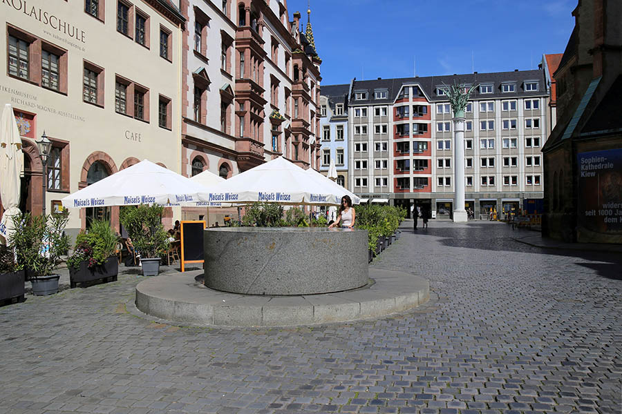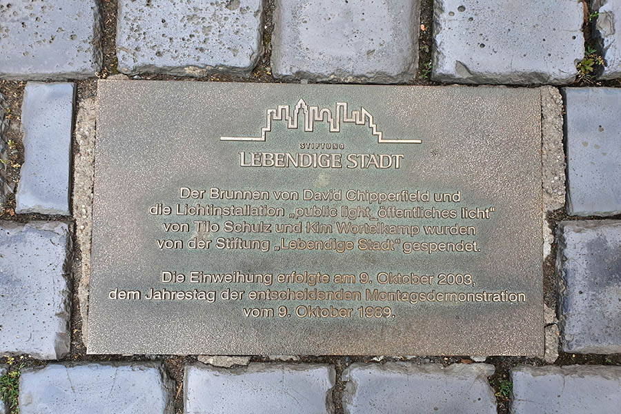 Der Brunnen auf dem Nikolaikirchhof befindet sich zwischen Nikolaikirche und Alter Nikolaischule und erinnert an die Friedliche Revolution 1989. Er wurde nach Entwürfen des Londoner Architekturbüros David Chipperfield umgesetzt und am 9. Oktober 2003 eingeweiht. Der Brunnen – auch Chipperfield-Brunnen genannt – besteht aus einer kreisförmigen Brunnenschale aus hellem Lausitzer Granit, die auf einem runden Sockel ruht. Das überlaufende Wasser symbolisiert das Aufbegehren der Bürger im Herbst 1989.
