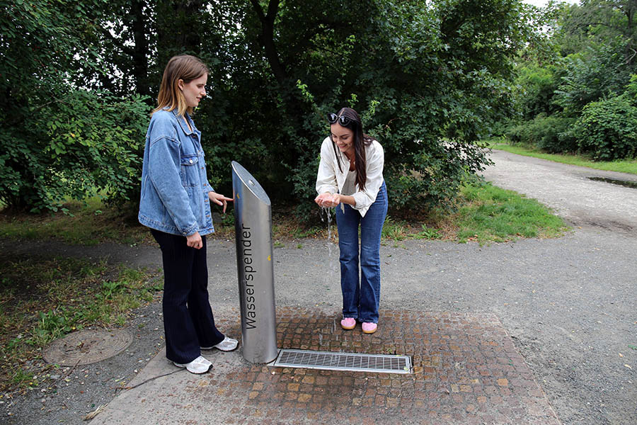 Mindestens genauso beliebt im Sommer wie die unzähligen Parks und Seen in und um Leipzig sind auch die Trinkwasserbrunnen, deren Anzahl seit den letzten Jahren kontinuierlich zunimmt. Die Edelstahlsäulen betten sich neben Fahrradständern und Pollern unauffällig in Leipzigs Stadtbild ein.
