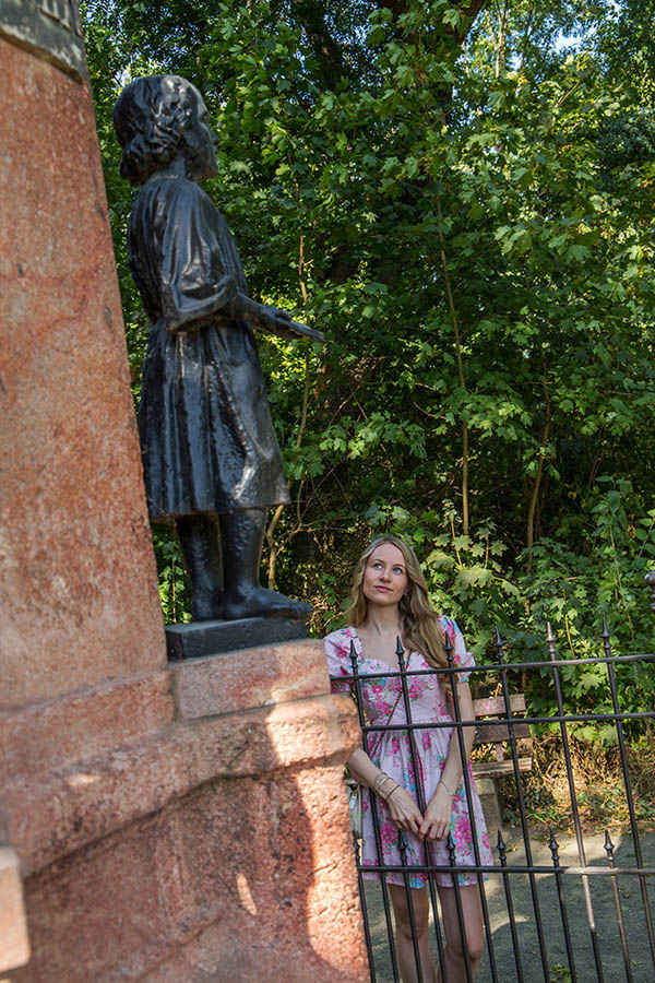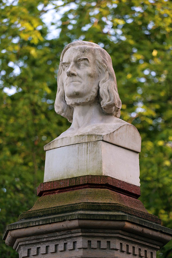 Die überlebensgroße Marmorbüste verwittert über die Jahrzehnte zusehends, deshalb entstand 1944 eine Kopie. Sie wurde am 17. März 1950 aufgestellt. Später gibt es Zerstörungen durch unbekannte Vandalen, so dass die Bronzegießerei Noack 1996 die Knabenskulpturen neu gießen muss. Die Gittereinfriedung ist ebenfalls erneuert worden.