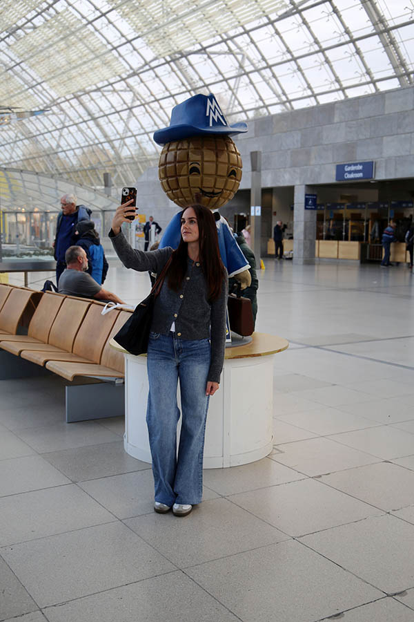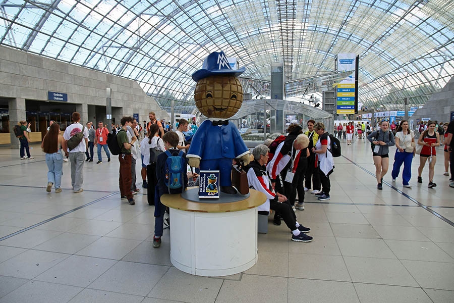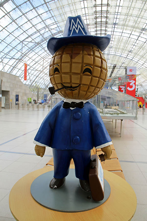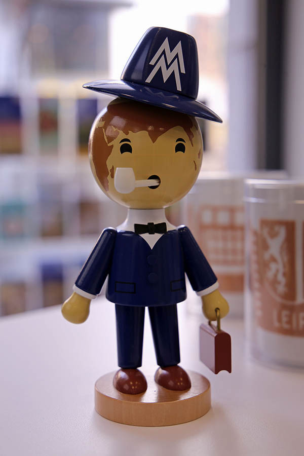 Die Figur bleibt sich dennoch treu: Globuskopf, blauer Anzug und das Doppel-M auf dem Hut sind seine Markenzeichen. Nach wie vor steht das Messemännchen für die Tradition des Handelsplatzes Leipzigs und eine ganz besondere Verbindung zwischen Messe und Stadt. Die neuen Versionen blicken inzwischen netter drein. Auf Plakaten und bei Animationen. Freudestrahlend lässt das Messemännchen schon mal einen Globus auf dem Finger kreisen. Gänzlich wird ihm die Pfeife aber nicht weggenommen. Gelegentlich raucht das Messemännchen noch.
