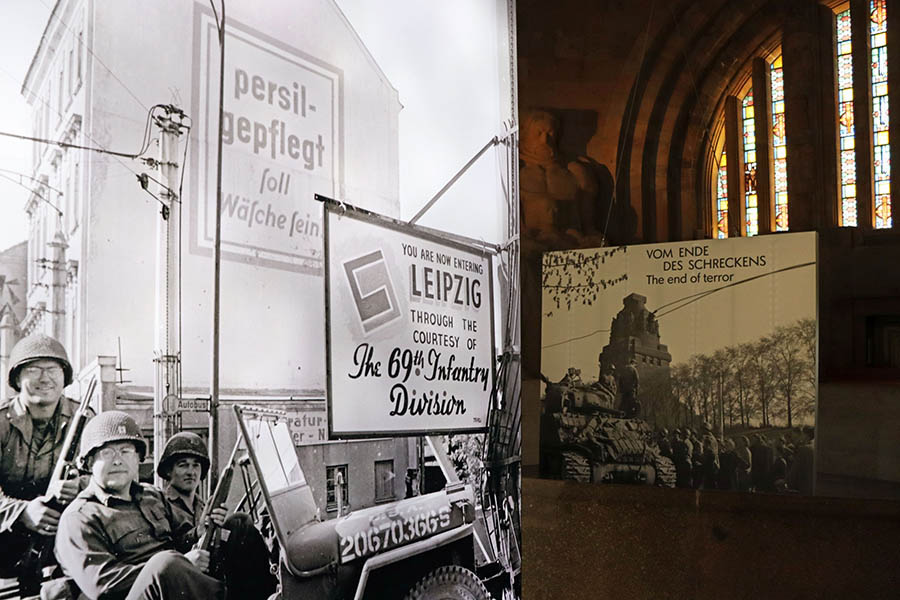 Wenige Tage später, am 8. Mai 1945, endet der Zweite Weltkrieg mit der bedingungslosen Kapitulation der deutschen Wehrmacht. In DDR-Geschichtsbüchern wird die Befreiung Leipzigs durch die US-Amerikaner allerdings verschwiegen. Die findet darin erst durch die die Ankunft der Roten Armee am 2. Juli 1945 statt. Mit der Übergabe an die Rote Armee gemäß den Vereinbarungen von Jalta nimmt jedoch der demokratische Neuanfang nach dem Zweiten Weltkrieg ein jähes Ende. Es beginnt der Aufbau einer kommunistischen Diktatur unter sowjetischer Vorherrschaft.