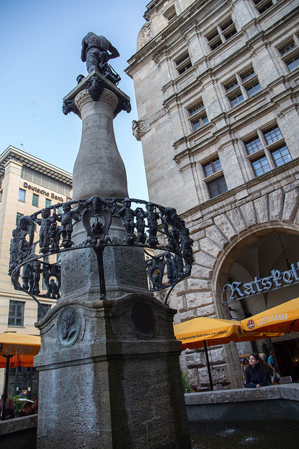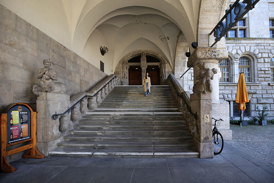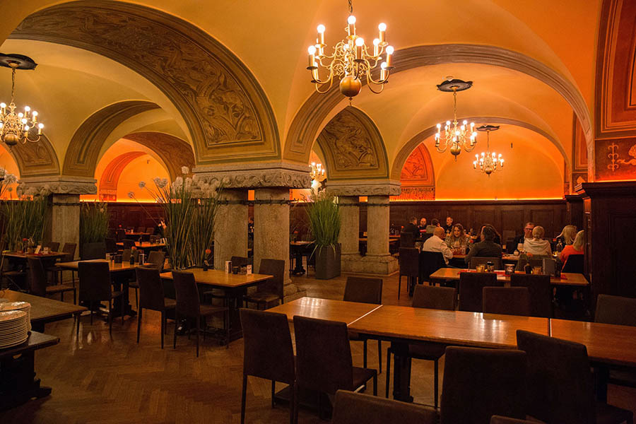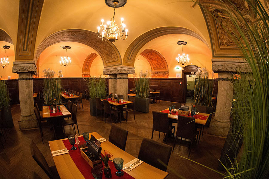 Zwei rotglänzende Kupferkessel ziehen im Ratskeller Leipzig die Blicke auf sich. Die traditionsreiche Gaststätte im Neuen Rathaus stellt ihr Bier selbst her. Schon der mehr als drei Meter hohe Stuhl direkt im Eingangsbereich des Großen Kellers ist ein Symbol für die Gastlichkeit des Hauses, das sich oft neu erfindet und mit der Zeit geht. Davon zeugt nicht zuletzt die Idee, Bäume zu befördern. Von jeder verkauften Ein-Liter-Lotterwasser-Flasche wird gemeinsam mit der Umweltorganisation „Plant für planet“ ein Baum gepflanzt. Wer den Ratskeller vom Burgplatz aus betritt, gelangt zunächst ins große Restaurant. Das fasziniert durch wuchtige Säulen unter den Kreuzgewölben und alten Wandvertäfelungen.