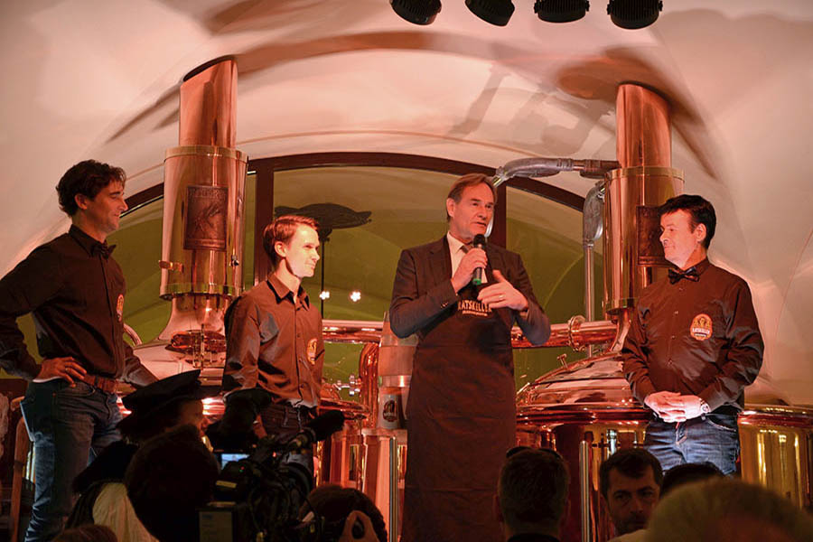 Drei Jahre später gibt es eine weitere Novität: Der Ratskeller braut sein eigenes Bier. Am 21. März 2017 wird die Leipziger Braumanufaktur eingeweiht. „Lotteraner“ heißt das Bier, gebraut von Braumeister Norman Jung. Es wird im Lokal, aber auch zum Mitnehmen außer Haus verkauft. Schon seit November 2016 schenkt der Ratskeller nur noch sein eigenes Bier aus. Zunächst braut das Restaurant nach eigener Rezeptur noch außer Haus. Dann wird direkt vor den Augen der Gäste der Sud angesetzt und die Würze gekocht.