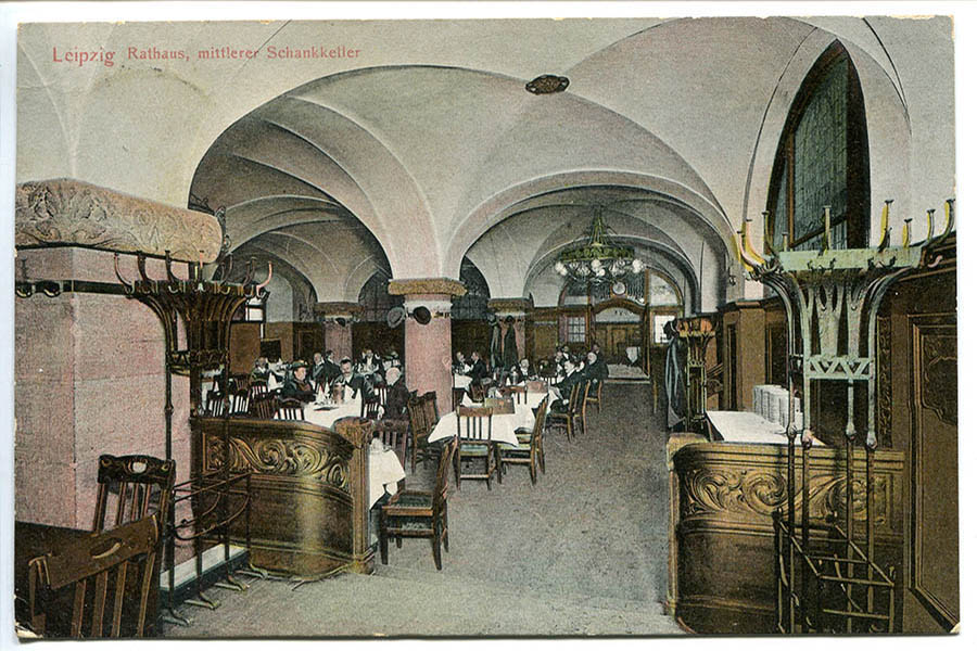 Ein Restaurant des Rathauses hat Tradition. Bereits 1563 eröffnet der Rat der Stadt Leipzig einen „Ratsweinkeller“ – in der „Goldenen Schlange“ (heute Areal Barthels Hof) am Markt. Der „Ratsweinkeller“ wird später verpachtet und bleibt bis 1826 bestehen, obwohl es viele Streitereien – sogar vor dem Hofgericht – mit Weinhändlern gibt. Die Ausschreibung für den Bau des neuen Hauses der Stadtverwaltung knüpft an die Tradition an und sieht einen „Ratskeller mit allen zum Betriebe eines Wein- und Bierschanks nötigen Wirtschafts- und Nebenräumen“ vor.