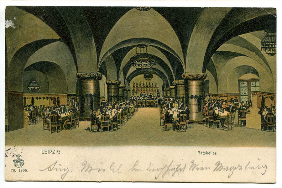 Den Ratskeller gibt es seit Bau des Neuen Rathauses, das auf den Fundamenten der alten Pleißenburg errichtet wird. Zwischen 1899 und 1905 entsteht das Gebäude nach Plänen des Baumeisters und Stadtbaurates Hugo Licht. Noch vor Fertigstellung des Rathauses kann die neue Gaststätte am 1. Oktober 1904 zum ersten Mal öffnen. Erster Pächter ist Karl Blechschmidt.