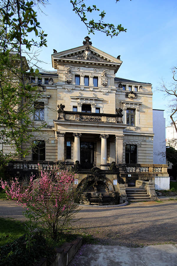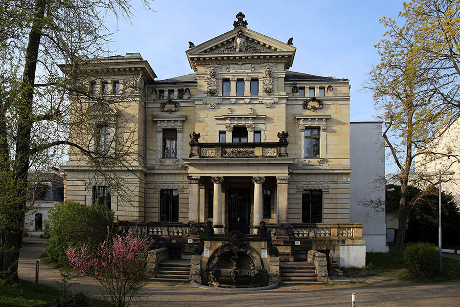 Ursprünglich heißt die Villa Hilda. Abgeleitet ist dies von Hildegard, der Frau von Adolf Bleichert. Ein Schriftzug ist am Gebäude noch heute zu sehen. Der Inhaber der Drahtseilbahnfabrik Adolf Bleichert & Co. kauft das Grundstück gegenüber vom eigenen Betriebsgelände in der Lützowstraße, um darauf eine repräsentative Villa zu errichten. Das bestehende Haus lässt er 1891 abreißen. Leisten kann er sich den Neubau – das Unternehmen floriert. Bleichert gilt als der weltweit erfolgreichste Seilbahnbauer. Entworfen hat die mehrstöckige Villa mit ihren attraktiven Räumen das Leipziger Architekturbüro Pfeifer und Händel. Auch das Treppenhaus wird prächtig gestaltet, beispielsweise mit einem Wandbrunnen.