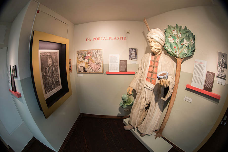 Sie befindet sich in einem barocken Gebäude, das eines der ältesten Kaffeehäuser Europas beherbergt. Seit 1711 wird darin das liebste Heißgetränk der Sachsen ausgeschenkt. Die eindrucksvolle Portalplastik gibt dem Haus seinen Namen. August der Starke soll sie gestiftet haben. Zu sehen ist ein osmanischer Würdenträger unter einem Kaffeebaum, dem ein Putto eine Schale reicht. Das Museum ist separat vom Kaffeehaus und Restaurant „Zum Arabischen Coffe Baum“ zugänglich.