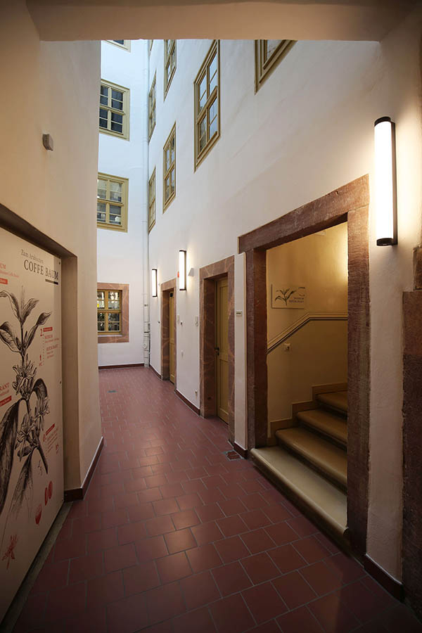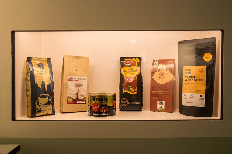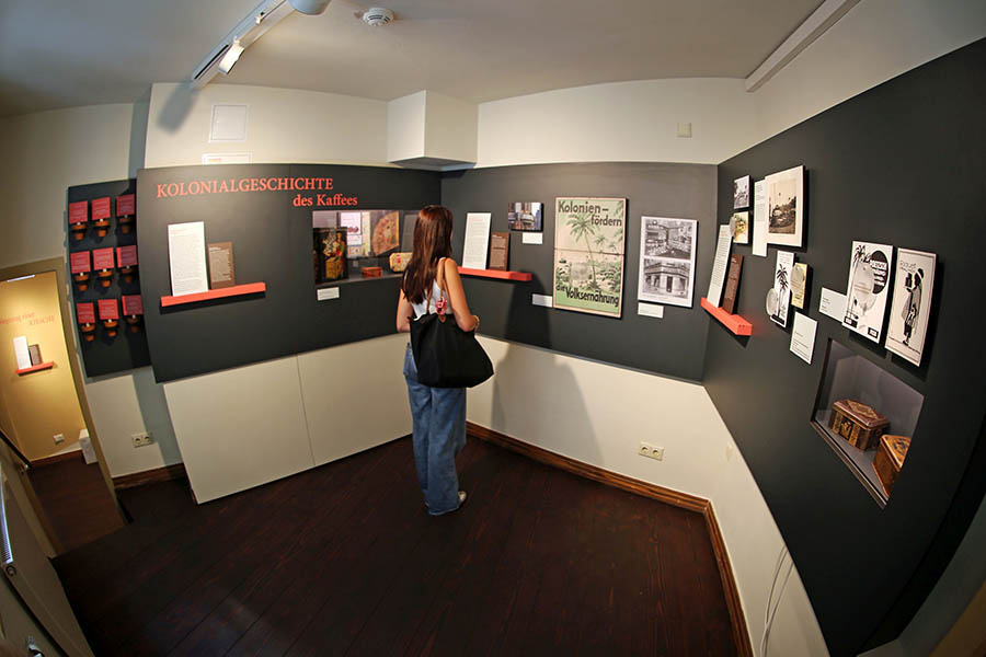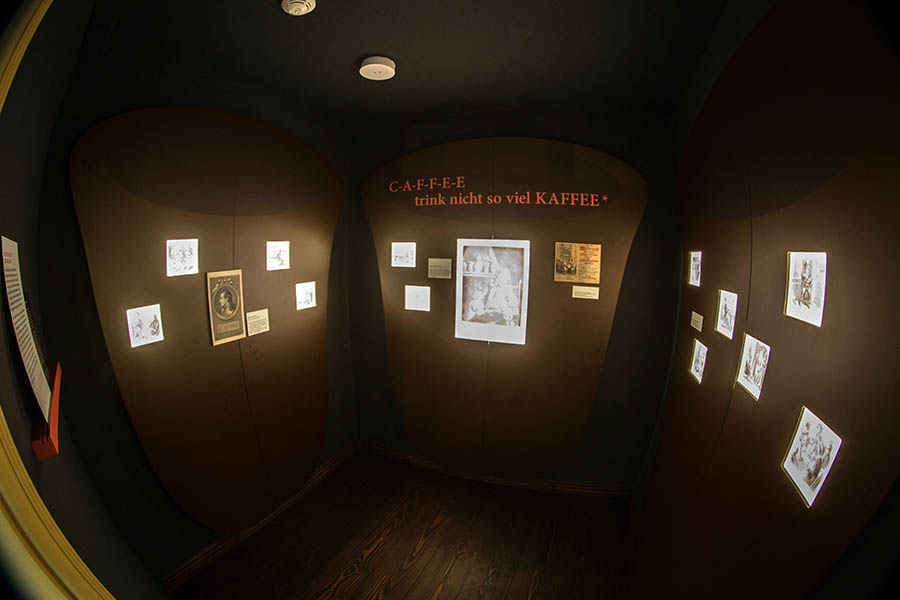 In 16 historischen Räumen können die Gäste sich kurzweilig auf den Spuren des Kaffees unterhalten lassen, über Klischees nachdenken, außerdem die Schattenseiten der Bohne – wie die kolonialen Verflechtungen ihres Anbaus – reflektieren. Die Bohne ist streng genommen eine Kirsche. Botanisch handelt es sich um Steine oder Samen der Kaffeekirsche, wie das Museum aufklärt. Die Früchte des Kaffeestrauchs heißen im Arabischen bun (Beere), daher ist die Bezeichnung Kaffeebohne entstanden. Die Ursprünge des Kaffeeanbaus liegen in den Bergen des ehemaligen Königreichs Kaffa, das heute zu Äthopien gehört.
