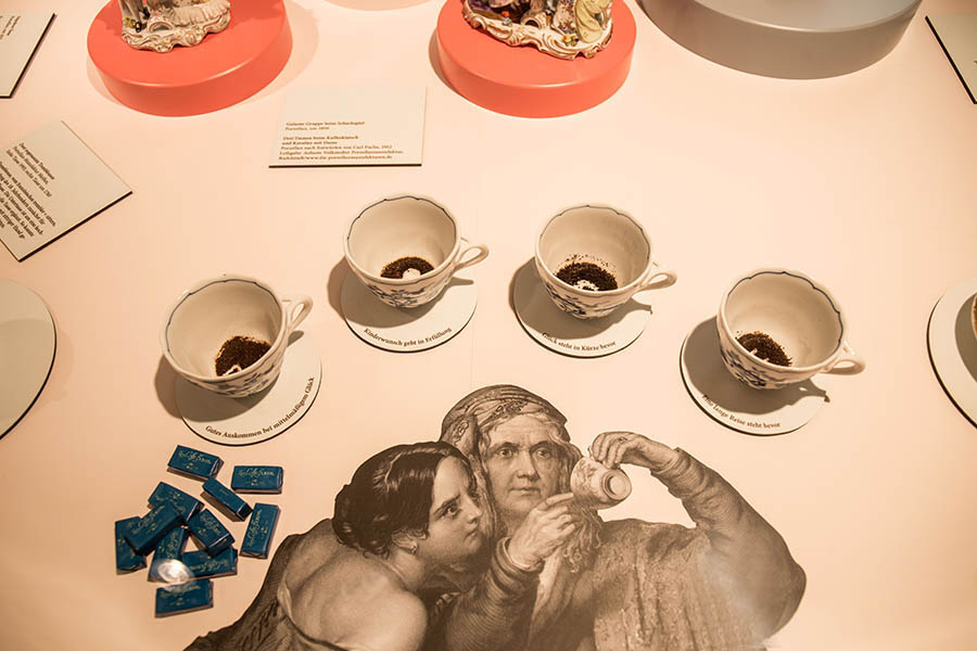 Dass Leipzig Johann Sebastian Bachs berühmte Kaffeekantate nicht ausspart, versteht sich von selbst. Ihr ist ein eigener Raum gewidmet. Der Leipziger Kaffeehausgeschichte wird ebenfalls viel Aufmerksamkeit geschenkt. Da dürfen Richters Kaffeehaus oder das Café Corso nicht fehlen. 1697 wird in Leipzig die erste deutsche Kaffeehausverordnung erlassen. Sie untersagt Glücksspiele und Prostitution.