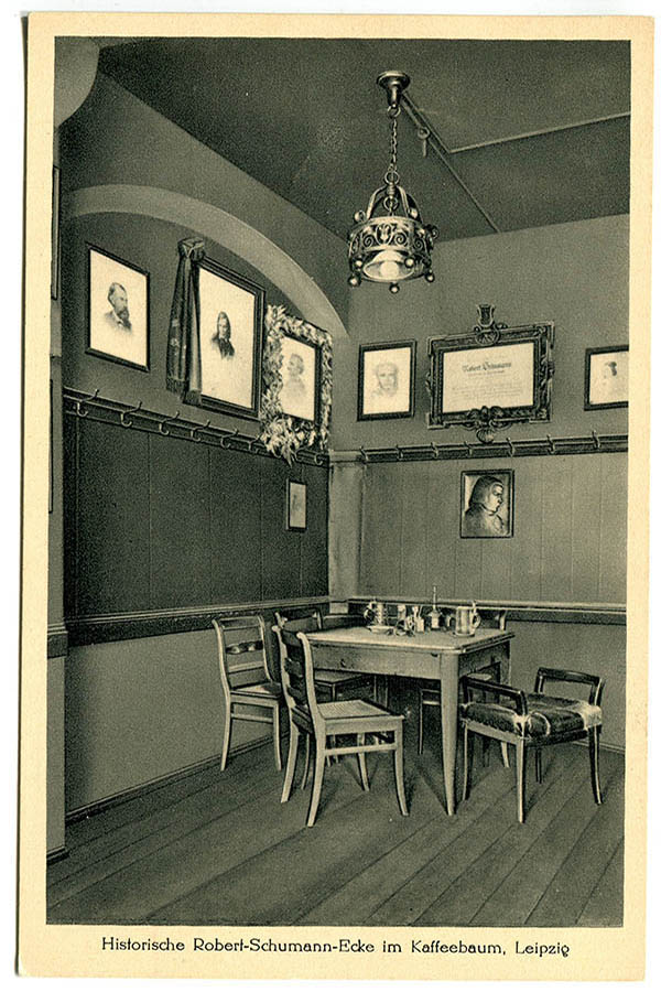 Der „Coffe Baum“ ist stets Anziehungspunkt für berühmte Gäste, wie für den Schriftsteller Johann Christoph Gottsched oder den Komponisten Robert Schumann. 1983 werden hier Szenen des Spielfilms „Frühlingssinfonie“ mit Herbert Grönemeyer in der Rolle des Robert Schumanns gedreht. Schumann sucht das Traditionslokal zwischen 1833 und 1840 regelmäßig auf und trifft sich hier mit den „Davidsbündlern“, einer Gemeinschaft von Künstlern und Kunstfreunden.