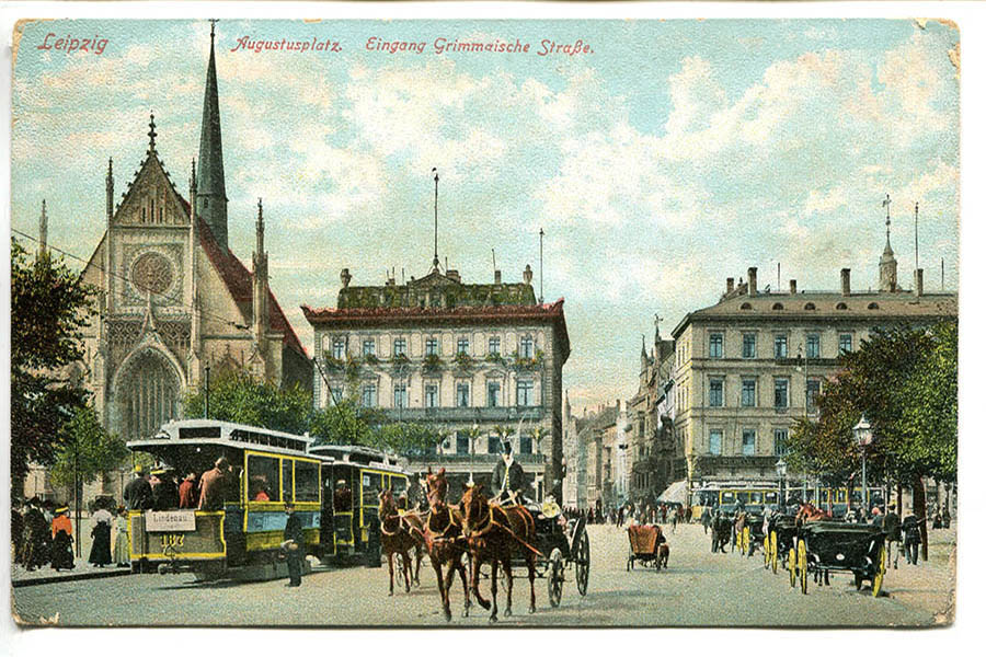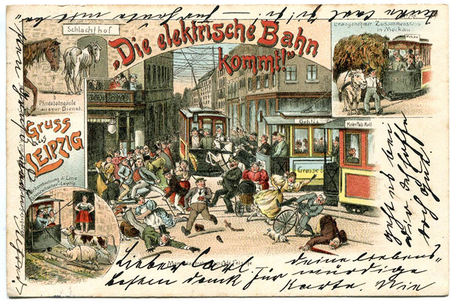 Die beginnt am 18. Mai 1872. An jenem Tag nimmt die Pferdebahn mit einer Ausfahrt aus dem Depot in Reudnitz ihren Betrieb auf. Etwa 25 Jahre können die Fahrgäste gemütlich mit der Pferdebahn durch Leipzig zuckeln. Dann wird der Elektromotor erfunden. Leipzig vergrößert sich rasch, vor allem durch die 1889 beginnenden Eingemeindungen.