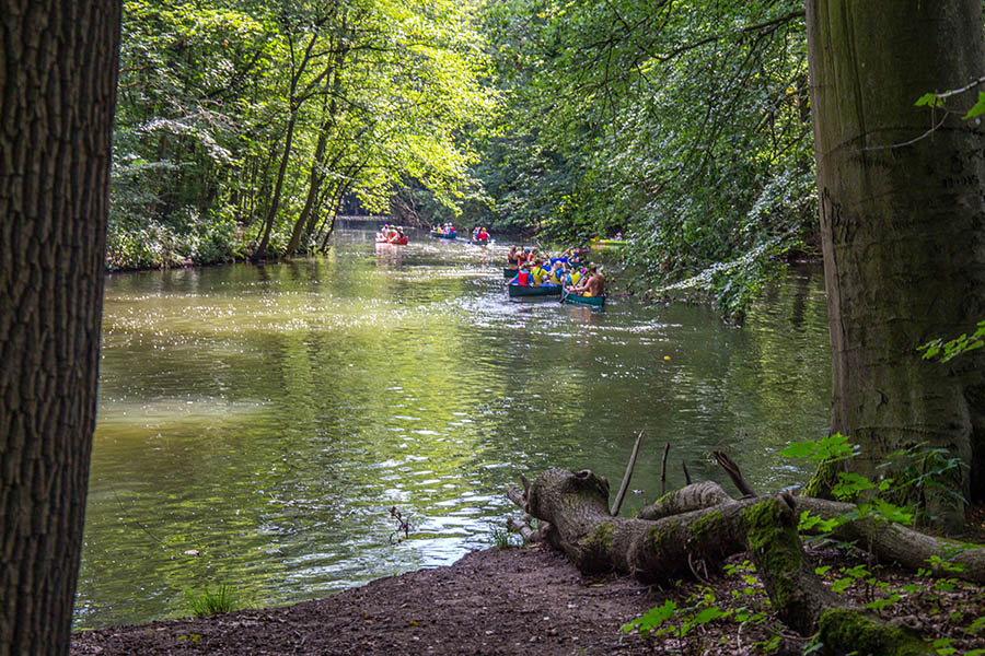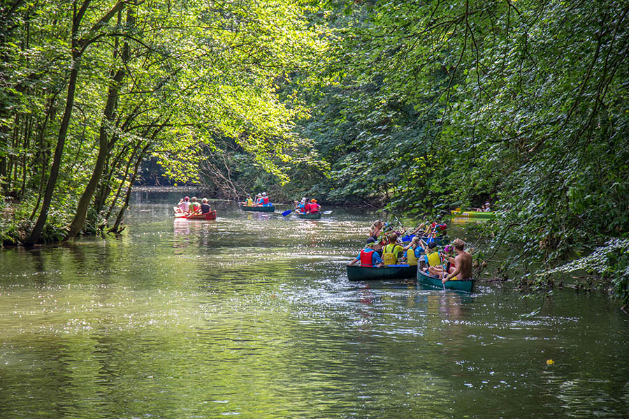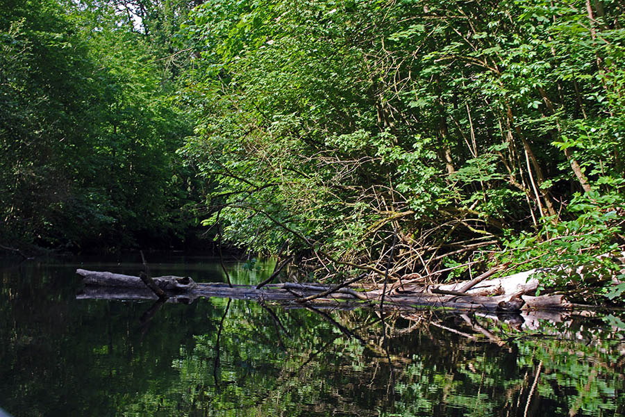 Oft liegen Bäume an verschiedenen Stellen im Wasser. Und manchmal heißt es, Kopf einziehen, um Ästen auszuweichen. Aufgrund seiner geringen Tiefe und Breite eignet sich der Floßgraben allerdings nur mit Einschränkungen für den Wassertourismus. Das kann vor allem an sonnigen Wochenenden zum Problem werden, wenn viele Paddler die Route vom Stadthafen Leipzig in den Cospudener See hinein nutzen. Deshalb heißt es Rücksicht nehmen: Der südliche Auwald ist ohnehin Landschaftsschutzgebiet und europäisches Vogelschutzgebiet sowie Heimat zahlreicher bedrohter Arten.