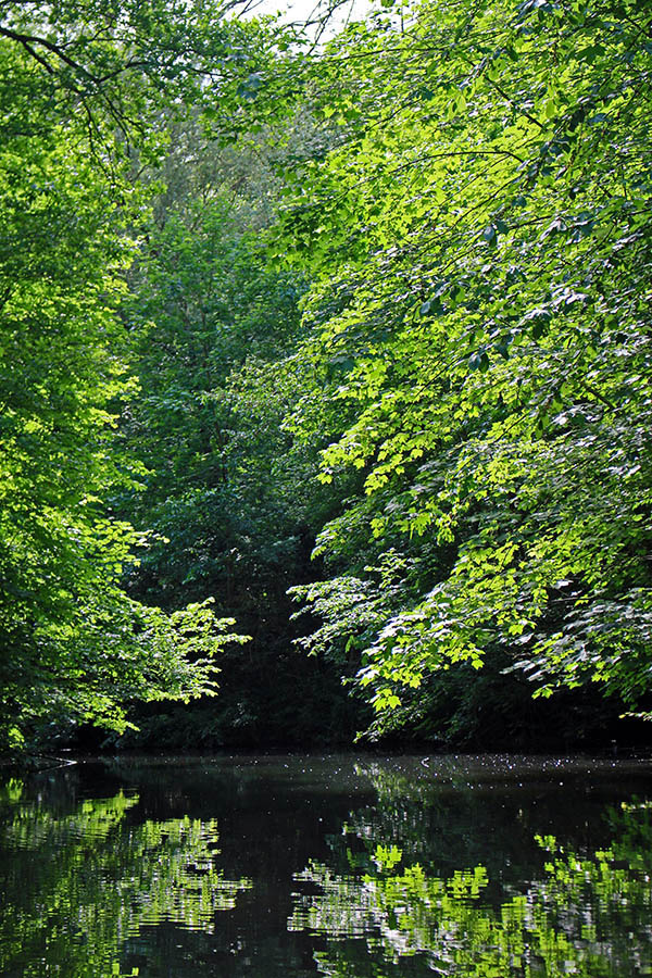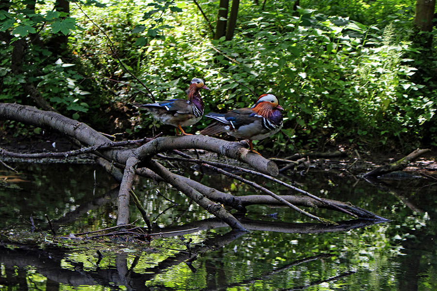 Wer die zugelassenen Zeiten nutzt, wähnt sich in einer Idylle. Südlich der Weißen Brücke ist das Gewässer – das offiziell „Batschke – Floßgraben“ heißt – wildromantisch. Die Sonne scheint durch die Bäume hindurch auf die Brennnesseln. Das animiert die Libellen zum Tanzen. Mandarinenten schwimmen behutsam mit ihren Jungen. Hin und wieder wird auch ein Reiher gesichtet. Zahlreiche bedrohte Wasserinsekten und Kleinfische sind anzutreffen. Und natürlich der geschützte Eisvogel, der seine Brutröhren am Flussufer baut. Er braucht vor allem schützende Äste, die über das Wasser hängen. Dort wartet der scheue Vogel, um nach Fischen und Insekten zu tauchen.