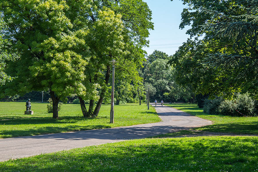 Teiche, Wasserspiele, ein Musentempel, lebensgroße sandsteinerne Plastiken – der agra-Park zwischen Markkleeberg und Dölitz ist ein Natur-Kleinod und Gartendenkmal. Erholungssuchende gehen dort gern spazieren und radeln. Die Idylle ist jedoch ein wenig getrübt. Das liegt an der Hochstraße, die das Naherholungsgebiet regelrecht zerschneidet. Die vielbefahrene Bundesstraße 2/95 ist im Groben die Grenze zwischen den Städten Leipzig und Markkleeberg, denen der agra-Park gehört. Der historisch gewachsene Park dehnt sich seit 1895 aus, umfasst inzwischen verschiedene Teile wie den ehemaligen Herfurthschen Park, die Ausstellungsflächen und Hallen an der Bornaischen Straße, das Dölitzer Holz und den Goethepark einschließlich der Dölitzer Wassermühle.