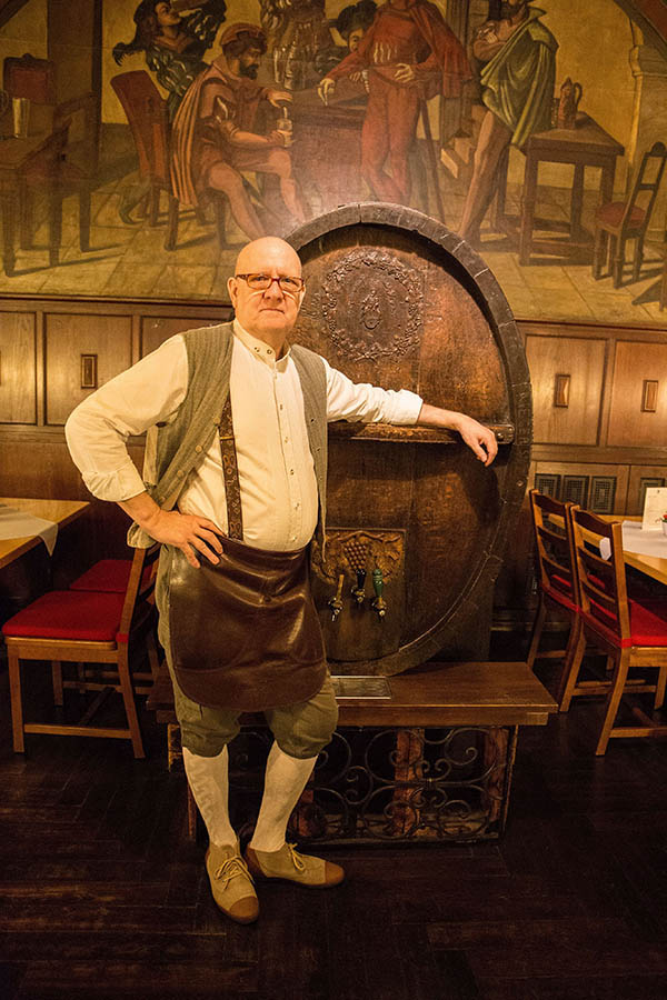 Belehrend oder drohend ist das alles nicht, vielmehr ein Spaß. „Die Leute sollen einen Abend genießen, den sie nicht so schnell vergessen“, sagt er. Und bekommt viel Zuspruch von Schauspielern und anderen Prominenten, die den Keller regelmäßig besuchen. Auf den Leib geschrieben ist Müller ebenfalls seit 2017 seine Rolle als Fasskellermeister – mit dem spektakulären Fassritt und dem magischen Verjüngungstrunk für jeden Gast in der Hexenküche. Sein „Faustseminar“, das er von Bernd Weinkauf übernommen hat, kommt auch bei vielen Schulklassen gut an.