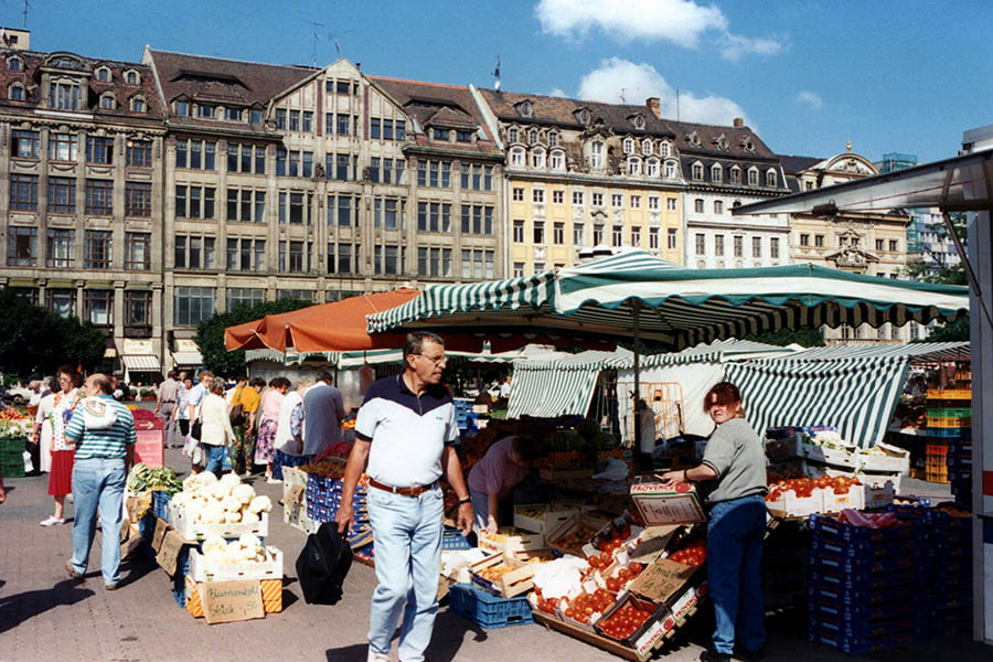 Nichts erinnert mehr an den einstigen Namen. Ein „verlorener Ort“ ist der Sachsenplatz trotzdem nicht wirklich. Der Platz, der seinen Namen im Jahre 2002 offiziell ablegt, ist inzwischen wieder dicht bebaut. Ein Museumskarree, zu dem das Museum der bildenden Künste, Hotels, Bürohäuser, Restaurants, die Tourist-Information Leipzig sowie das Haus Böttchergäßchen des Stadtgeschichtlichen Museums gehören, ist hier nach der Neubebauung entstanden.