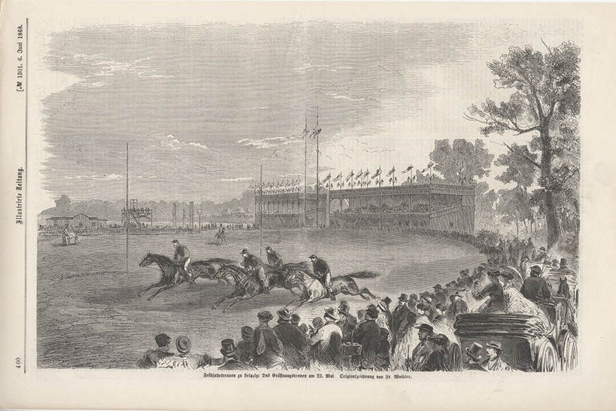 Station 2: Auf der Galopprennbahn am Scheibenholz wird an den Leipziger Rennklub erinnert, der mit seiner Gründung 1863 die erste Vereinigung von Fans des Pferderennsports in ganz Mitteldeutschland ist. Bereits vier Jahre später eröffnet der Klub die Rennanlage. 1907 erhält die Galopprennbahn ihre inzwischen restaurierte Holztribüne, die sehr zum besonderen Charme der Anlage beiträgt. Leipzig verfügt am Rennbahnweg 2a über die älteste noch erhaltene Sportstätte in Sachsen.