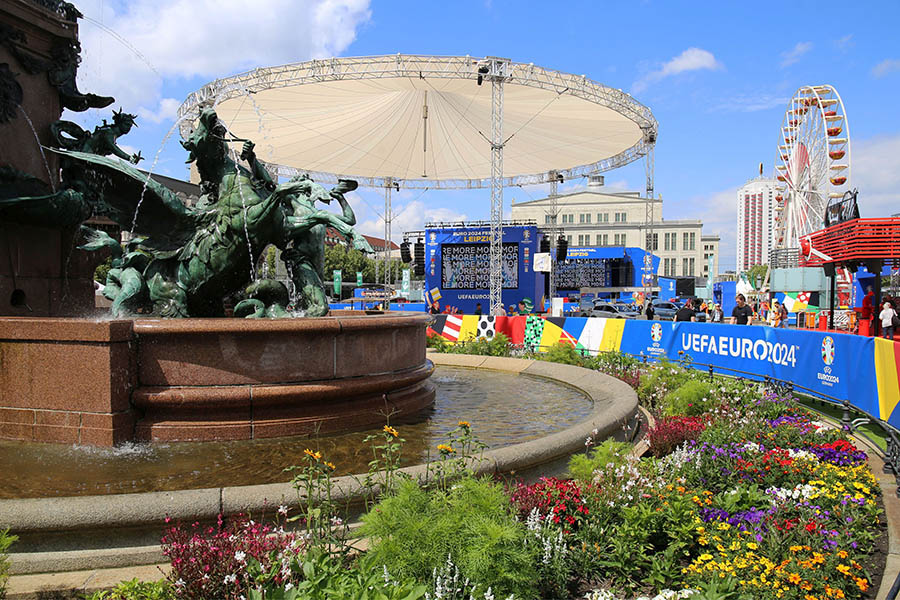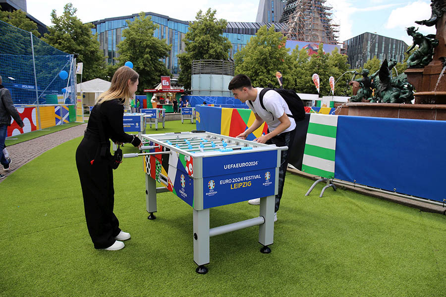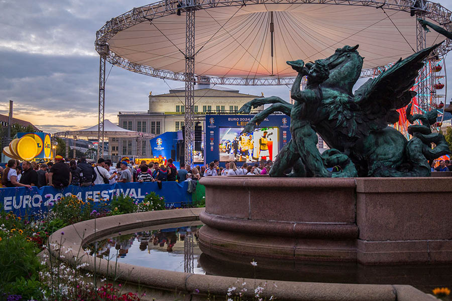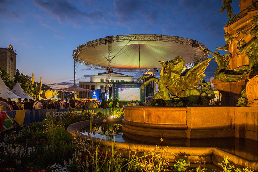 Für alle, die keine Tickets für die Spiele im Leipzig Stadium hatten, war vor allem die Fan Zone auf dem Augustusplatz ein wichtiger Anlaufpunkt für Fußballfans, Leipziger und Gäste. Während der gesamten Europameisterschaft fand hier zwischen Gewandhaus und Opernhaus neben dem beliebten Public Viewing aller 51 EM-Spiele auf zwei großen Leinwänden auch ein abwechslungsreiches Programm aus Sport und Kultur sowie zahlreichen Mitmachangeboten statt.