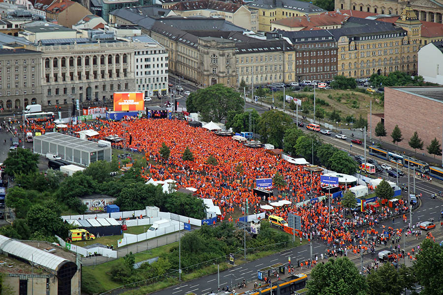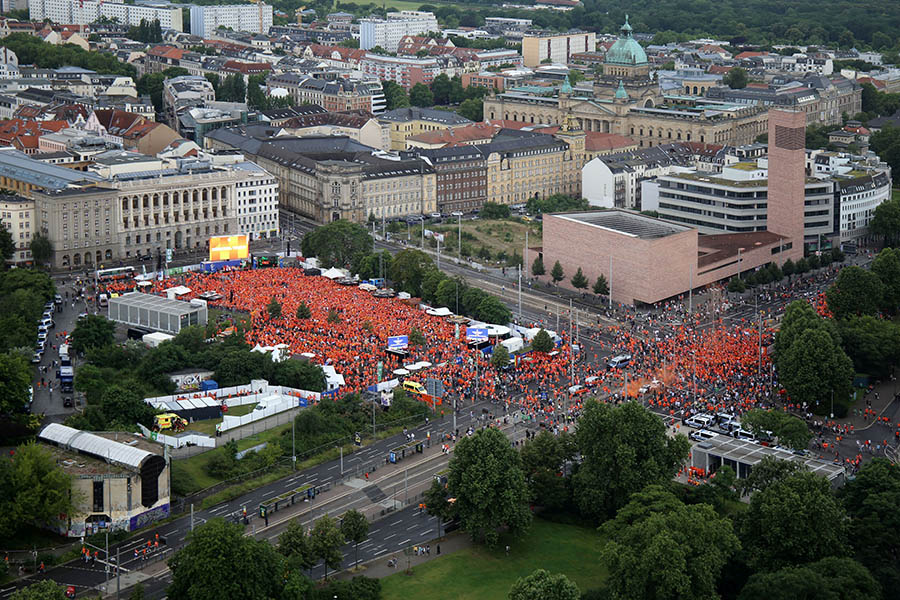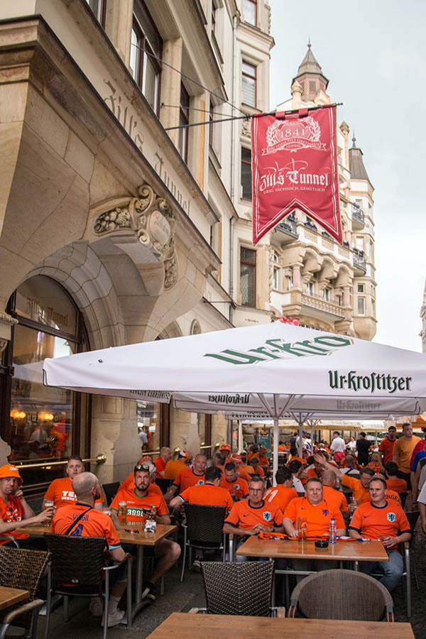 Unvergesslich sind unter anderem die 25.000 niederländischen Fans, die gemeinsam mit etwa 10.000 französischen Anhängern die Innenstadt in Orange und Blau tauchten und gemeinsam eine große Party feierten. Da tanzte Antje aus Holland gemeinsam mit Asterix und Obelix während eine Gruppe französischer Fans mitten auf dem Leipziger Markt Fußball spielte. Selbst ein Unwetter am Nachmittag tat der ausgelassenen Stimmung keinen Abbruch. Auch zehntausende portugiesische, tschechische, kroatische und italienische Fußballfans sorgten ebenso für ordentlich Stimmung, wie österreichische und türkische Anhänger vor und nach dem Achtelfinale.