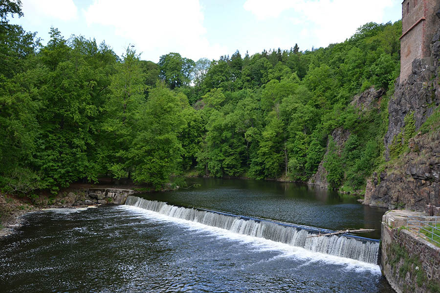 … wird an der Talsperre Kriebstein erzeugt. Durch die 235 Meter lange und 34 Meter hohe Staumauer entsteht nicht nur die Talsperre, die zum Verweilen einlädt, sie bietet auch die Möglichkeit der Stromproduktion. Mit der Kraft des Wassers werden drei Turbinen angetrieben und so für etwa 9.000 Haushalte Energie hergestellt.