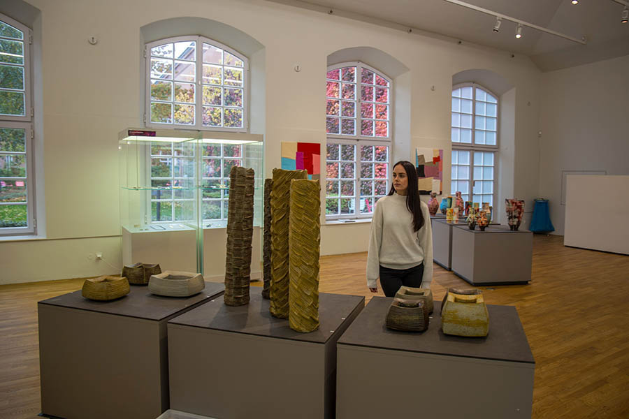 Das Besondere: Exponate mischen sich wieder in die Dauerausstellung im ersten Stock. So entstehen Spiegelungen und Kontraste mit den Meisterwerken der Sammlung. Das sorgt für besondere Effekte. Ein Beispiel dafür ist eine Festtafel im Römischen Saal. Sonngard Marcks hat diese mit prachtvollem Geschirr, Blumen, Walderdbeeren, Zitronen, Artischocken, aber auch diversen Insekten und Krabbeltieren eingerichtet. Für ihre feine Fayencemalerei ist sie 2025 mit dem Grassipreis des Carl und Anneliese Goerdeler Stiftungsfonds ausgezeichnet worden. Jahr für Jahr vergibt die Fachjury verschiedene Preise.