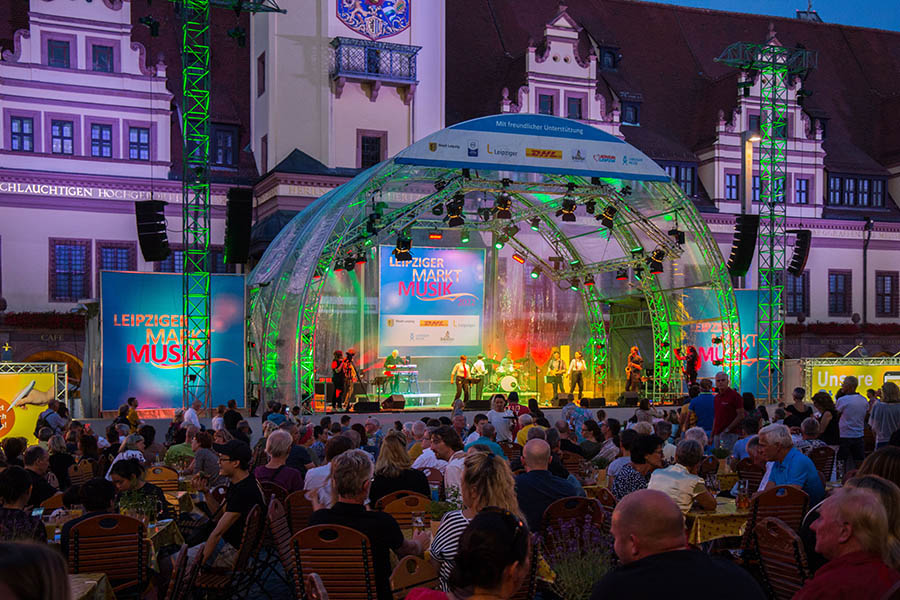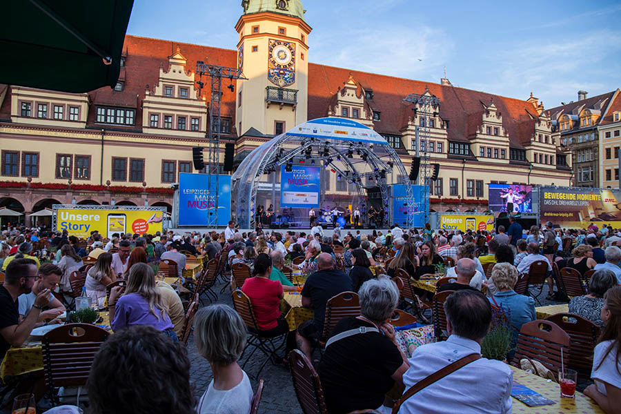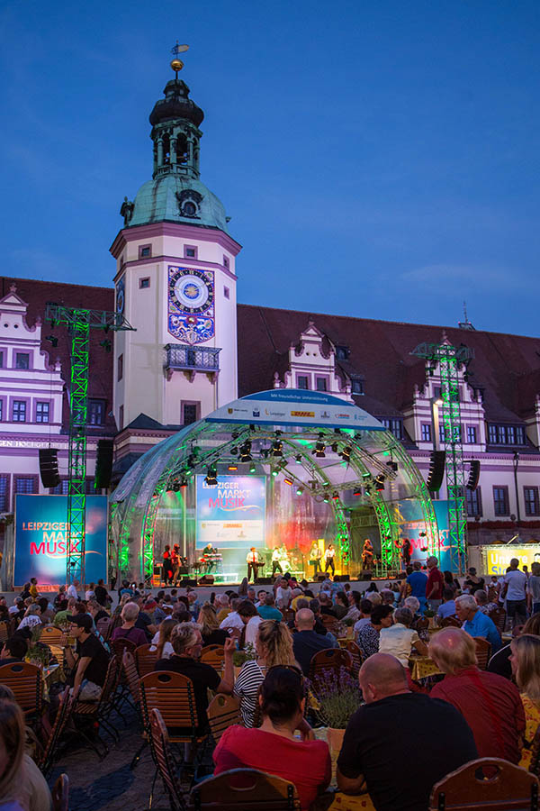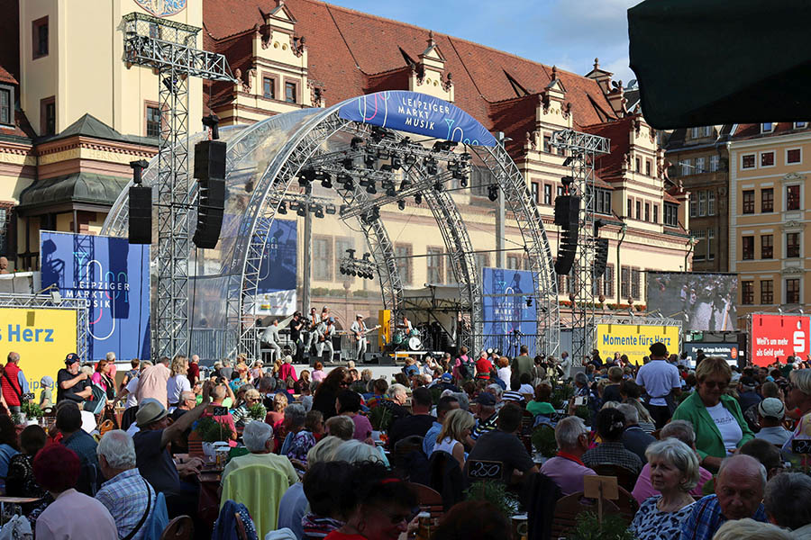 Auf ihrer Abschiedstournee schauen im August 2025 sogar The Rubettes vorbei. Von den Gründungsmitgliedern der britischen Popband ist zwar nur noch Keyborder Bill Hurd dabei. Doch wenn die Ohrwürmer von einst erklingen, stört dies kaum jemanden. Die Leipziger Markt Musik, der Nachfolger der legendären Classic Open, begeistert jeweils im August zehn Tage lang ihr Publikum vor der Kulisse des Alten Rathauses. Die Veranstaltung hat sich längst einen festen Platz im Sommerkalender der Stadt erobert. Das Publikum schätzt die Atmosphäre an den sommerlichen Abenden bei entspannter Stimmung und lauschiger Musik. Möglich wird die Leipziger Markt Musik – das Doppel-M im Namen soll Zufall sein – durch eine Reihe von Sponsoren.