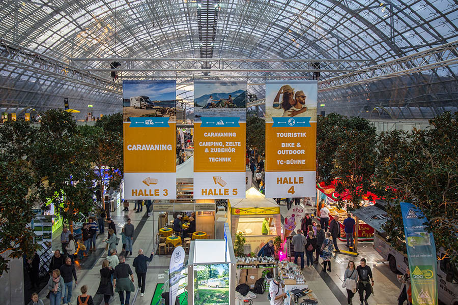 Voll im Trend bleibt über all die Jahre Camping: 42 Millionen Gästeübernachtungen weist die Statistik für 2023 auf deutschen Campingplätzen auf, das sind deutlich mehr als im Vor-Corona-Jahr 2019. Auf der Touristik & Caravaning wird die komplette Palette an Fahrzeugen gezeigt, mit denen die Menschen reisen und übernachten können – etwa Wohnwagen, Wohnmobile oder zu Wohnlandschaften ausgebaute Gigaliner. Einen Zeltbereich, zu dem nicht nur das klassische Mini- oder Steilwandzelt, sondern auch die Vorzelte zum Einhängen an die Kofferraumklappe sowie das Dachzelt gehören, gibt es ebenfalls. Die Caravaning-Hallen sind Publikumsmagnet Nummer eins. Besonders die Einsteigerthemen wie Kastenwagen oder Dachzelte ziehen viel Interesse auf sich.