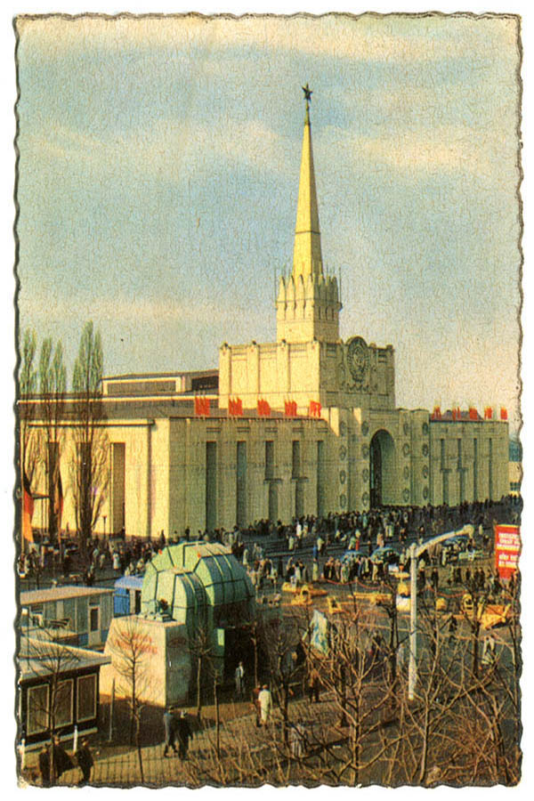 Das Gebäude entsteht bereits 1923 bis 1924 nach Plänen von Oskar Pusch und Carl Krämer, und zwar als Messehalle für Werkzeugmaschinen. In seiner jetzigen Form existiert der Pavillon seit 1952. Ab 1950 werden Fassade und Innenraum des Gebäudes nach dem Vorbild Moskauer Bauten aus den 1930er Jahren umgebaut.